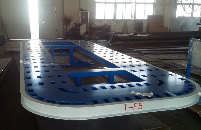 騰飛公司生産的奔騰大梁校正儀是校正系列中最豪華的設備。由16MN合金鋼闆拼焊而成,強度高、剛性好。塔柱與平台一體化設計。平台沿軌道進行移動,360度無障礙。平台採用單邊升降和垂直升降。